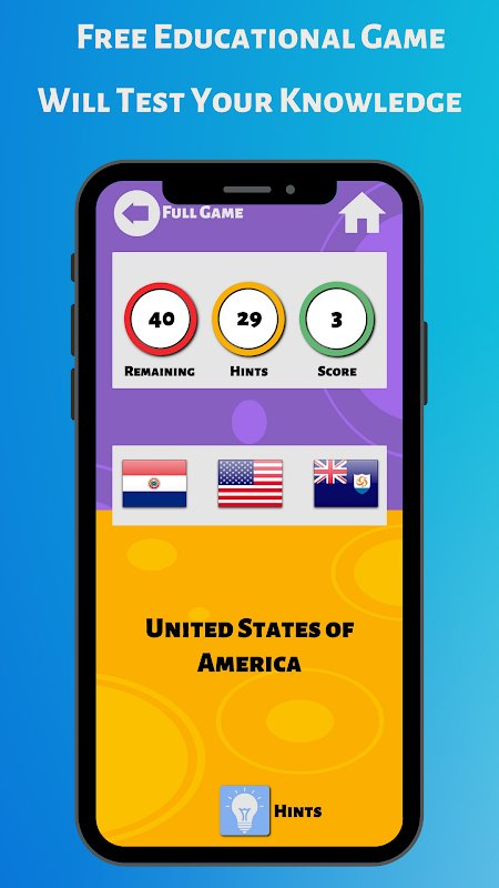 اس فلیگ گیم کو خاص طور پر دستیاب کوئز گیمز اور متعدد کوئز فیچرز کے امتزاج کے ساتھ ڈیزائن کیا گیا ہے۔ یہ گیم آپ کو سیکھنے کا ایک تفریحی عمل فراہم کرے گا جو آپ کے علم اور میموری گیمز کی مہارت کو بہتر بنائے گا! آپ اپنے جھنڈے کے علم کی جانچ کرتے ہوئے اس جھنڈے سے مماثل تلاش سے لطف اندوز ہوں گے!