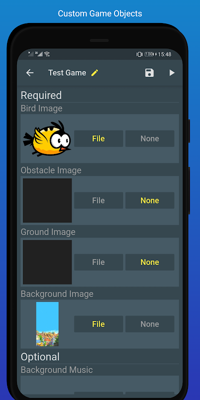 اپنی مرضی کے مطابق فلاپنگ گیم بنائیں، پرندے، پس منظر اور مزید کا انتخاب کریں۔