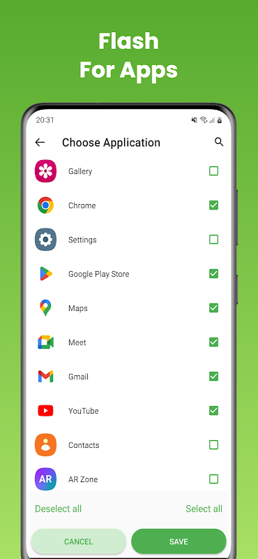 ✔ فلیش آپشن جس کے لیے ایپ کی اطلاعات آتی ہیں۔