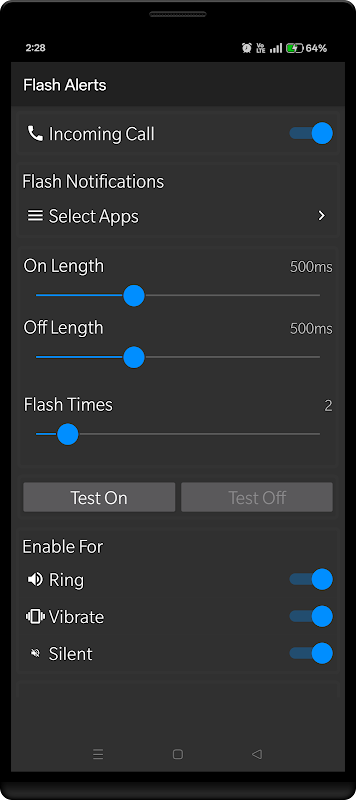 آنے والی کال اور آنے والے متن پر فلیش انتباہات