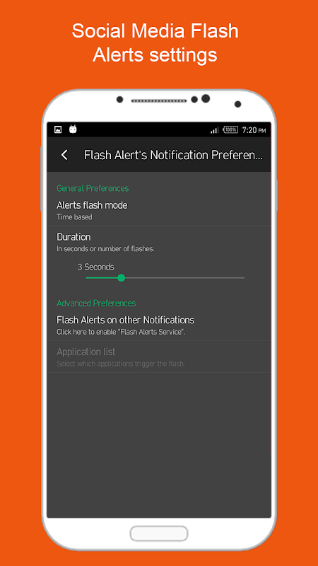 Flash Alerts will be absolutely helpful for you in the night time or after dark when you do not want to hear ringtones. Flash Alerts blink on your call, SMS and social media apps. In this Flash Alerts you can adjust speed of blinking flashlight through seek bar before enable flash alert and also test how much flash blink on every call and SMS. Flash Alert is very useful to help you not miss Call, SMS in dark night even mobile phone is in Vibrate or silent. When you are in party and noise place this flash alert. You can adjust flash blink on social network like Facebook, WhatsApp, Viber, Tweeter etc notifications.