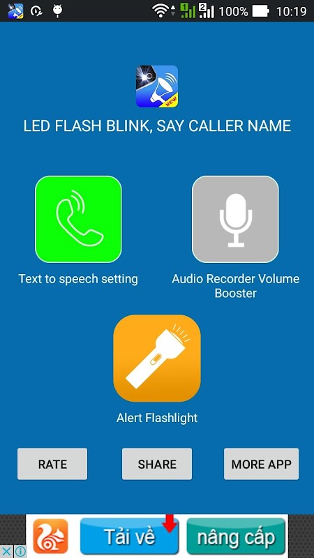 App "LED FLASH BLINK, SAY CALLER NAME" technology used text-to-speech (Speech to Text) help you identify the caller or message to you when you are not holding the phone in hand.