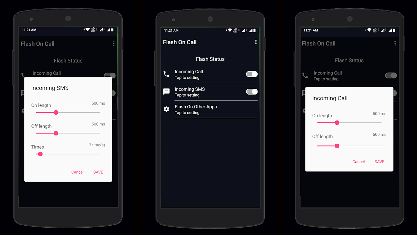 فلیش آن کال اور ایس ایم ایس ایپ صارف دوست اور استعمال میں واقعی آسان ہے۔ فلیش آن کال اور فلیش آن ایس ایم ایس میں متعدد اختیارات شامل ہیں۔ انکمنگ کال اور ایس ایم ایس پر پلک جھپکنے کا وقفہ اور فلیش بلنک کاؤنٹ اس فلیش نوٹیفکیشن ایپ کے اندر کنٹرول کیا جا سکتا ہے۔ آپ مختلف رنگر موڈز میں فلیش آن کال اور ایس ایم ایس ایپلیکیشن کو فعال یا غیر فعال کر سکتے ہیں۔