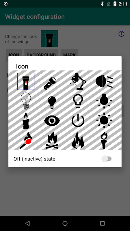 ویجٹ اور اسٹرو بوسکوپک (پلک جھپکتے) اثر کے ساتھ سادہ فلیش لائٹ ایپ۔