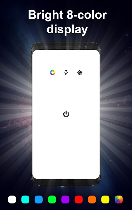 - ایک 8 رنگوں کا روشن سکرین موڈ ہے جس میں آپ 3 تعدد کی چمک کو ایڈجسٹ کرسکتے ہیں اور چمک کو ایڈجسٹ کرسکتے ہیں (جب فون میں ایل ای ڈی فلیش نہیں ہوتا ہے تو یہ موڈ طے شدہ طور پر قابل ہوجائے گی)
