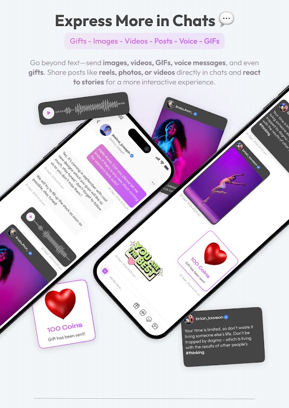 • مختصر ویڈیو ریلز، تصویری پوسٹس، اور ٹیکسٹ پوسٹس