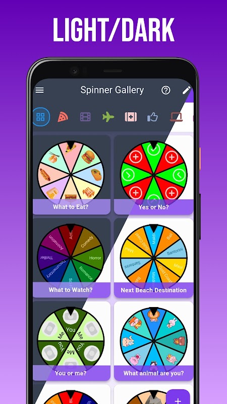 - **گھمنے کے لیے مفت، پیار کرنے میں آسان:** **25+ ریڈی میڈ پہیوں** (کھانا، گیمز، سفر، کام اور بہت کچھ!) کے علاوہ **2 ملٹی اسپنرز** (جیسے ڈائس رول کرنا یا بے ترتیب چیلنجز بنانا) سے لطف اندوز ہوں—کسی سیٹ اپ کی ضرورت نہیں!