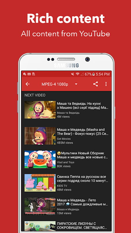- Search among millions of YouTube music videos for free: smart search with suggestions