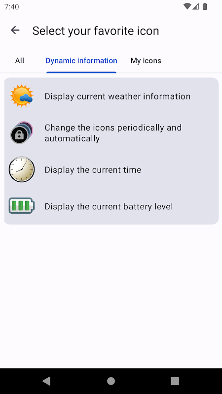 - بٹن آئیکن کو بلٹ ان فری آئیکنز/آپ کے اپنے آئیکنز/موسم کی معلومات سے تبدیل کیا جا سکتا ہے