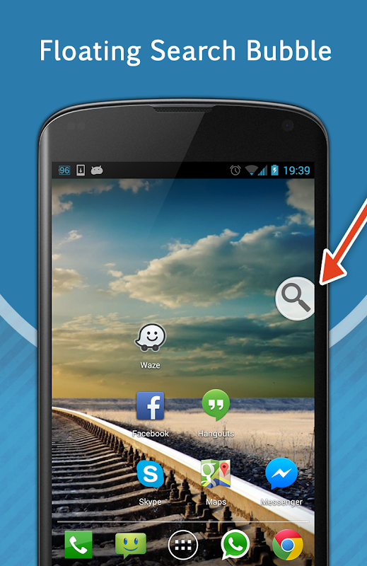 Similar to Facebook chat heads , The floating search bubble stays with you, no matter which application you use.
