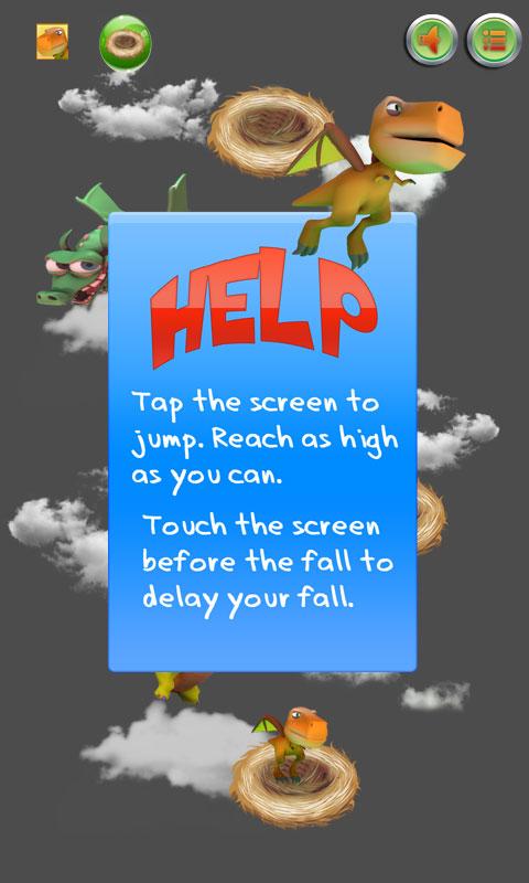 You are required to train this baby dragon flying in the sky properly. To train her how to fly you need to tap on the screen to hop her to the upper nest. Keep an eye on the position of the nest and tap, the baby dragon will hop to the next nest. But if u miss your calculation, baby dragon will fall, and you fail to train her properly.