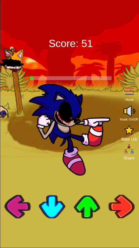 FNF SONIK.EXE کریکٹر ٹیسٹ میں کیا کرنا ہے؟ آپ کو زیادہ سے زیادہ پوائنٹس اسکور کرنے کی ضرورت ہے۔ یہ کیسے کرنا ہے؟ گیم شروع کرنے سے پہلے، ہیرو سٹیٹ اور میوزک کو منتخب کریں جو آپ کو سب سے زیادہ پسند ہے، اور پھر پلے پر کلک کریں۔ گیم شروع کرنے کے بعد، اپنے آلے کی سکرین پر تیروں پر کلک کریں۔ جیسے ہی آپ تیر پر کلک کریں گے، ہیرو ایک نوٹ گائے گا اور ایک خاص حرکت کرے گا، اور آپ کو پوائنٹس سے نوازا جائے گا۔ اگر آپ نے 800 پوائنٹس بنائے تو یہ گیم کا اچھا نتیجہ ہے۔ اگر آپ 1000 سے زیادہ پوائنٹس حاصل کرنے میں کامیاب ہو گئے تو - آپ FNF SONIK.EXE Mod ٹیسٹ کھیلنے میں بہت اچھے ہیں۔