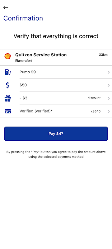 پمپ کا QR کوڈ اسکین کریں، رقم کا انتخاب کریں اور اپنے کریڈٹ کارڈ یا ڈیبٹ کارڈ سے ادائیگی کریں۔