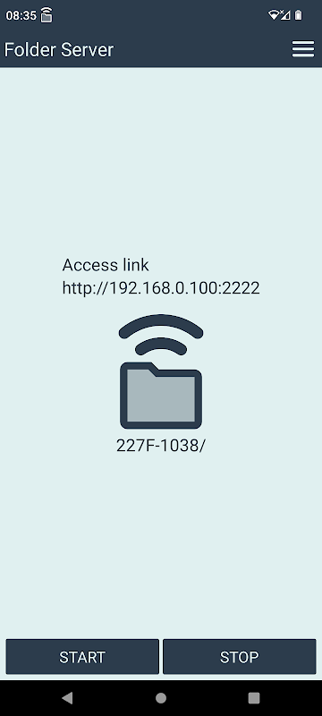 2. HTTP سرور شروع کرنے کے لیے "start" دبائیں۔ ایپ رسائی کا لنک دکھائے گی۔