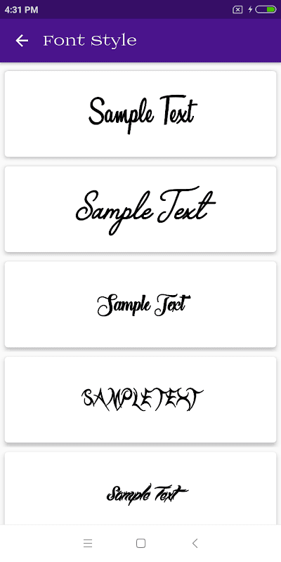 فونٹ اسٹائل میں فوری پیش نظارہ کے ساتھ مختلف فونٹ ہوتے ہیں تاکہ آپ ایک نظر ڈالیں کہ بالکل فونٹ کس طرح نظر آئے گا۔