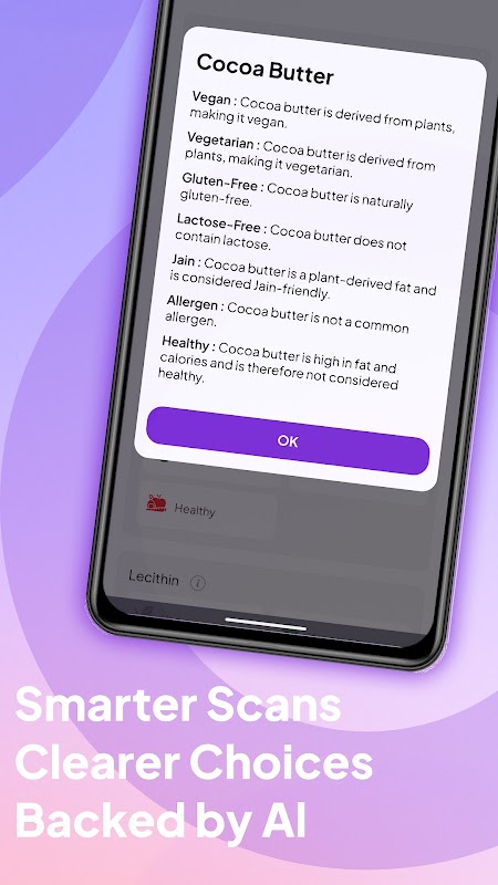 • اجزاء کی مکمل فہرست دیکھنے اور پوشیدہ اضافی اشیاء کی شناخت کرنے کے لیے بس اپنے کھانے کے پیکج پر موجود بارکوڈز کو اسکین کریں۔