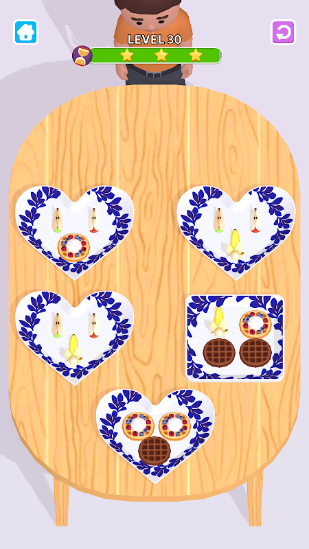 Put food items of the same category type on the Plate to complete the level, Only one item can be moved each time of sorting