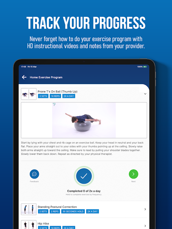 اس ایپ کا استعمال کرتے ہوئے، آپ ایچ ڈی انسٹرکشنل ویڈیوز کے ساتھ اپنے ذاتی نوعیت کے ہوم ایکسرسائز پروگرام تک رسائی حاصل کر سکتے ہیں۔ 'پیغامات' ٹیب پر، آپ اپنے فاؤنڈیشن فزیکل تھراپی فراہم کنندہ کے ساتھ محفوظ طریقے سے بات چیت کر سکتے ہیں۔ جیسے جیسے آپ اپنے پروگرام میں پیشرفت کریں گے، آپ اپنے سنگ میلوں کو منانے کے لیے ورچوئل ٹرافیاں اور کامیابی کے بیجز حاصل کریں گے! اپنی کامیابیوں کو دیکھنے اور اپنی پیشرفت کو ٹریک کرنے کے لیے 'ایوارڈز' ٹیب پر جائیں۔