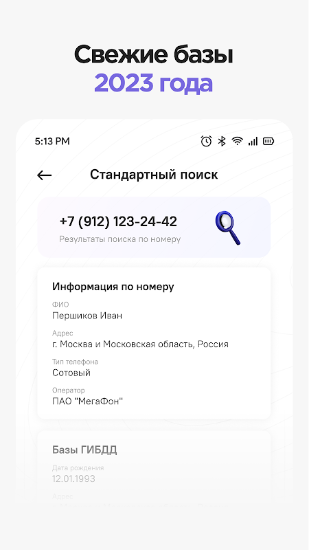 – پنچ فون نمبر: آپ تفصیلی معلومات حاصل کر سکتے ہیں - یہ کسی بھی شخص کا فون نمبر چیک کر رہا ہے، بشمول متعلقہ سوشل نیٹ ورک، Avito اور Auto.ru اشتہارات