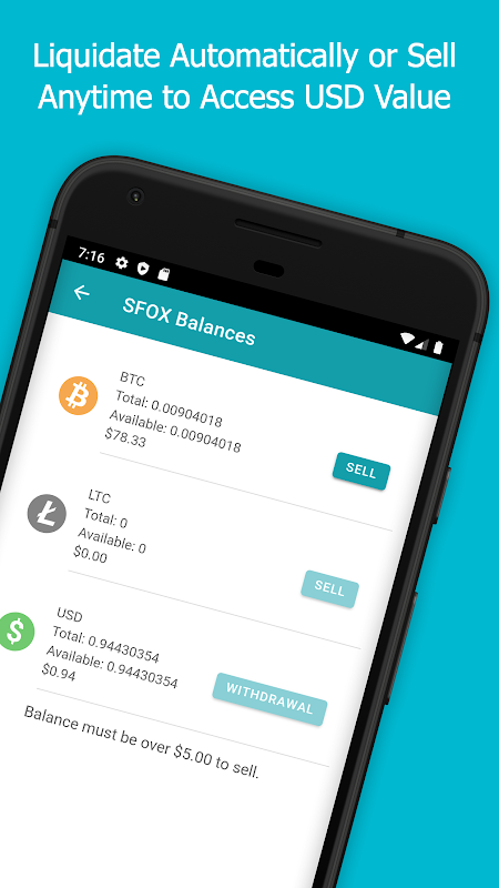 • Cyrpto addresses fetched from SFOX automatically
