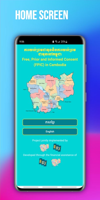FPIC مقامی لوگوں کی کمیونٹیز میں ترقی کے عمل میں مفت، پیشگی اور باخبر رضامندی سے متعلق معلومات فراہم کرتا ہے۔ یہ معلومات ڈیولپمنٹ اینڈ پارٹنرشپ ان ایکشن (DPA)، ایک کمبوڈیا کی غیر سرکاری تنظیم (این جی او) کی طرف سے فراہم کی گئی ہے جو کہ سی آئی ڈی ایس ای نامی ایک بین الاقوامی این جی او سے مقامی ہے۔ یہ تنظیم کمبوڈیا میں 30 سال سے زیادہ عرصے سے سرگرم ہے، مختلف مسائل سے نمٹ رہی ہے جیسے کہ کمیونٹی لیڈروں کے لیے صلاحیت کی تعمیر، صنفی مساوات، قدرتی وسائل کے انتظام، صحت اور تعلیم، اور خوراک کی حفاظت اور ساتھ ہی ساتھ ابھرتے ہوئے مسائل جیسے کہ موسمیاتی تبدیلیوں سے نمٹنے کے لیے ڈھالنا۔ اور نکالنے والی صنعتیں کیونکہ یہ موضوعات کمبوڈیا کے سیاق و سباق سے متعلق ہو گئے۔