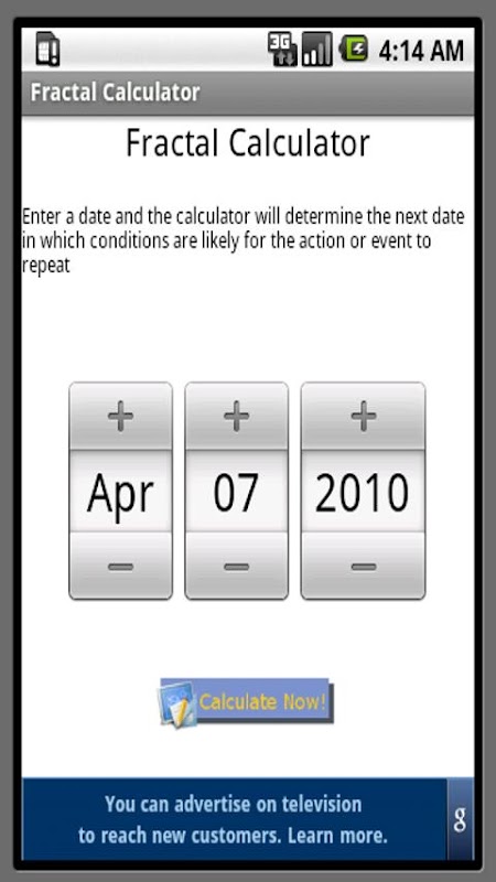 A very simple calculator to help you quickly calculate the next date of an event. This is based on theories presented in the book "Fractal Time" by Gregg Braden.