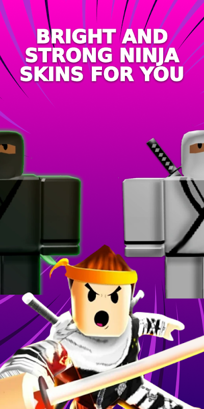 Free Ninja Skins DISCLAIMER: This is an unofficial app. The name, trademark and assets are the property of Roblox Corporation or their respected owner. This app is not licensed. We will help you choose an interesting image for the game and show you where it can be purchased in the original. All rights reserved. According to https://en.help.roblox.com/hc/en-us/articles/203313410-Roblox-Community-Rules