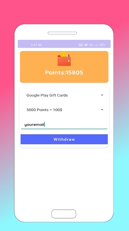 In this app there are five methods to earn free redeem code, gift card and paypal money.