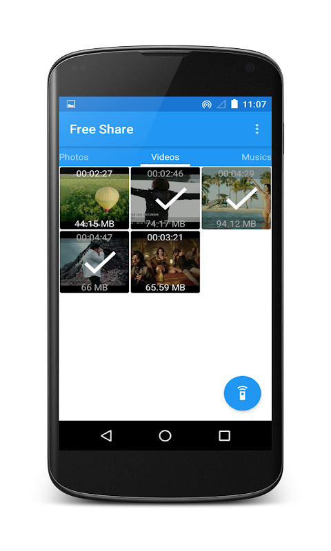 You can share media or files directly android to android. Just select your file and share it freely and flawlessly over wifi or hotspot.