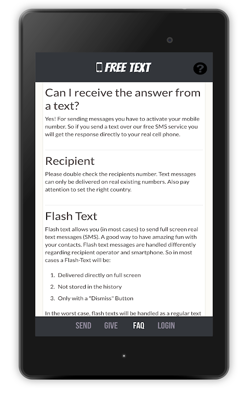 Free Flash text allows you (in most cases) to send full screen real text messages (SMS). A good way to have amazing fun with your contacts.