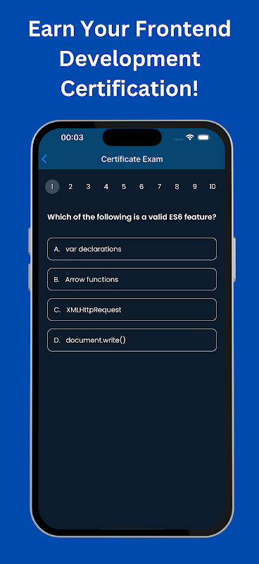 سرٹیفکیٹ اور کیریئر ٹولز: مکمل بنیادی ماڈیولز اور پاس اسیسمنٹس کو آفیشل فرنٹ اینڈ ڈیولپمنٹ اکیڈمی سرٹیفکیٹ حاصل کرنے کے لیے۔ اپنے ریزیومے، LinkedIn پروفائل، یا فری لانس پورٹ فولیو کو فروغ دینے کے لیے ان کا استعمال کریں۔ یہ جان کر اعتماد حاصل کریں کہ آپ نے وہ مہارتیں سیکھ لی ہیں جن کی آجر اور کلائنٹس سرگرمی سے تلاش کر رہے ہیں۔