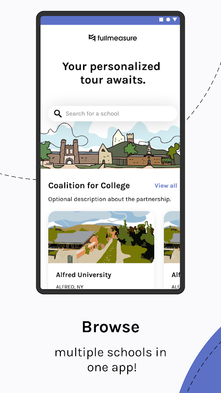 VisiTOUR آپ کے لیے کالجوں اور یونیورسٹیوں کے ذاتی دورے کرنے کا بہترین طریقہ ہے، چاہے کیمپس میں ہو یا گھر پر۔ آپ کا منفرد ٹور آپ اور آپ کی دلچسپیوں کی بنیاد پر تیار کیا جائے گا، اور آپ کو ایپ نیویگیشن اور Augmented Reality (AR) کے ساتھ کیوریٹڈ ملٹی میڈیا مواد کو براؤز کرنے کی اجازت دیتا ہے۔ VisiTOUR کے ساتھ، آپ یہ کر سکتے ہیں: