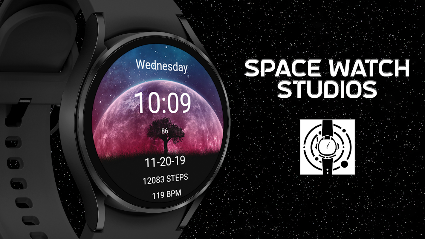 آپ کے Wear OS اسمارٹ واچ کے لیے Galaxy Moon Universe Space Stars Watchface