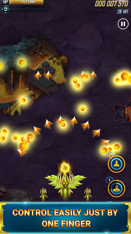دشمن کے تمام جہازوں کو تباہ کرنے، آخری باس کو شکست دینے اور خلائی شوٹر کہکشاں کی شوٹنگ کے ساتھ مشن کو مکمل کرنے کے لیے اپنے سربراہ کو قابو کرنے کی کوشش کریں۔ دشمن کو اپنے طیارے کو گولی مار کر لڑنے نہ دیں۔ ہر سطح پر آپ کو اسپیس کرافٹ کارڈ، ہیرے اور سونا ملے گا۔ اپنے اسپیس اسکرافٹ کو اپ گریڈ کرنے اور اسے مضبوط بنانے کے لیے ان کا استعمال کرنا نہ بھولیں۔ آپ کارڈ یا کرسٹل کے ساتھ طاقتور اسپیس شپ کو بھی کھول سکتے ہیں یا فائٹر گیمز ہوائی لڑائیوں میں ایپ خریداری کر سکتے ہیں۔