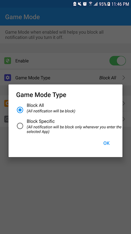 جب آپ اپنی مطلوبہ ایپلی کیشنز داخل کر رہے ہوں گے تو تمام اطلاعات کو چالاکی سے مسدود کردیا جائے گا۔ گیم موڈ تمام کالز ، انتباہات ، اور میڈیا آوازوں کو بھی خاموش کردے گا۔