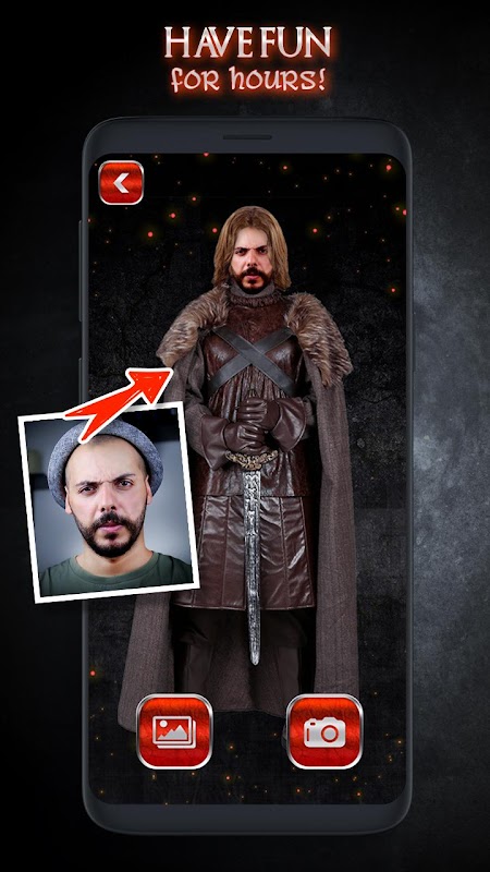 See how you would look with Daenerys dragons or Khaleesi dragons. Become a crown queen or a brave lord of thrones. Your photo montage collage with game of throne theme will be the most popular photo on all social media! You will win all thrones battle with this dress up editor. Dress up in photo in just one click. Our superhero costumes are realistic, so no one will know that this is just a face changer photo editor. Dress up yourself with Game of Throne Photo Editor: Costumes Photo Editor. Make a cosplay photo with your warrior dragon. Turn into your favorite warrior heroes with this face mask photo editor. Get it now for free!