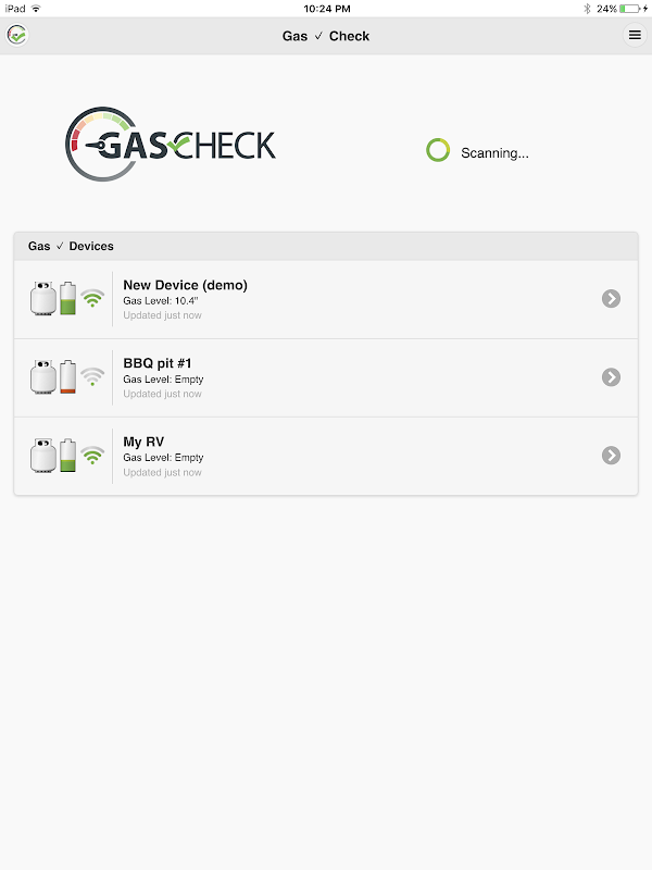 اس ایپلی کیشن کو گیسنو گیس چیک سینسر کے ساتھ استعمال کرنے کے لئے ڈیزائن کیا گیا ہے۔ گیس چیک ایپلی کیشن ایل پی جی پروپین لیول کی پیمائش کرسکتی ہے تاکہ آپ کو درست فل کی سطح اور جب آپ کا سلنڈر خالی ہوسکے۔ یہ آر وی ، ہیٹرس ، بی بی کیو گرلز وغیرہ میں پائے جانے والے سلنڈروں پر استعمال کیا جاسکتا ہے۔ گیس چیک سینسر مقناطیسی طور پر آپ کے پروپین سلنڈر کے نیچے پھنس گئے ہیں اور وقتا فوقتا پیمائش کریں گے اور گیس چیک ایپ پر وائرلیس طور پر فل کی سطح یا فیصد بھیجیں گے۔ اپنے سلنڈر کے نچلے حصے پر اس پر قائم رہو اور ٹھیک جانتے ہو جب آپ پروپین پر کم چل رہے ہیں! یہ ٹیکنالوجی پیٹنٹ زیر التواء ہے۔