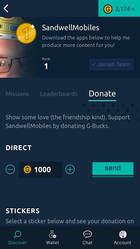 You can donate G-Bucks to your favorite creator. G-Bucks are available through an In-App Purchase from the Wallet section of the app. Donations are paid out monthly to creators in accordance with our payout terms.