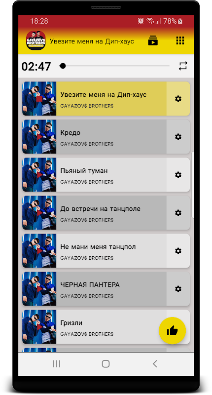 application "GAYAZOV $ BROTHER $ Songs without Internet" contains the best songs of Gayazov