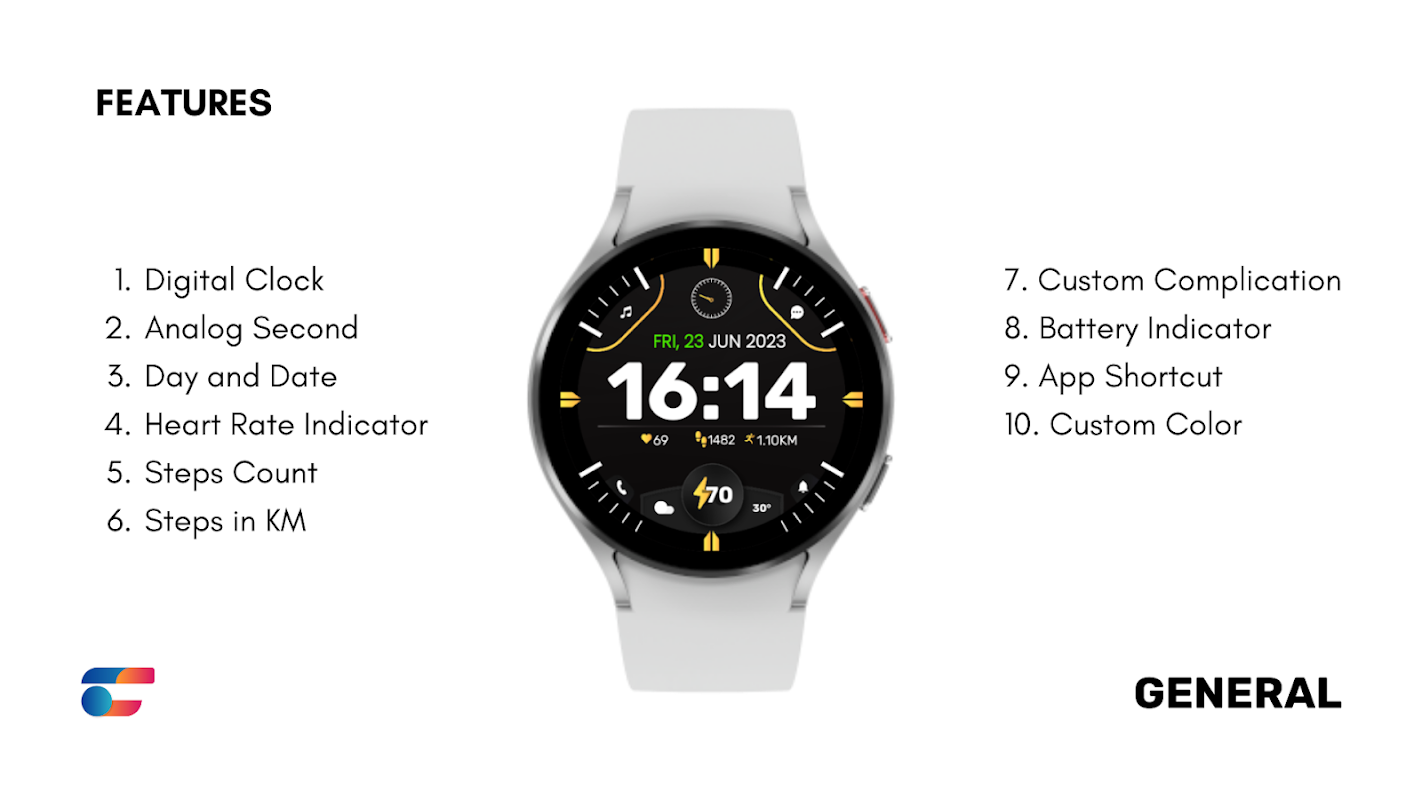 کسی ایسے شخص کے لیے جو روایتی اور بے وقت ظاہری شکل کو اہمیت دیتا ہے، یہ گھڑی کے چہرے کا انداز مثالی ہے۔ صاف، پڑھنے میں آسان ڈسپلے اور بنیادی، پرکشش انداز کے ساتھ، جنرل واچ فیس اسٹائل روزانہ پہننے کے لیے بہترین ہے۔ رنگوں کے امتزاج کے چیکنا اور عصری ظہور کی بدولت کوئی بھی لباس بہت اچھا لگے گا۔