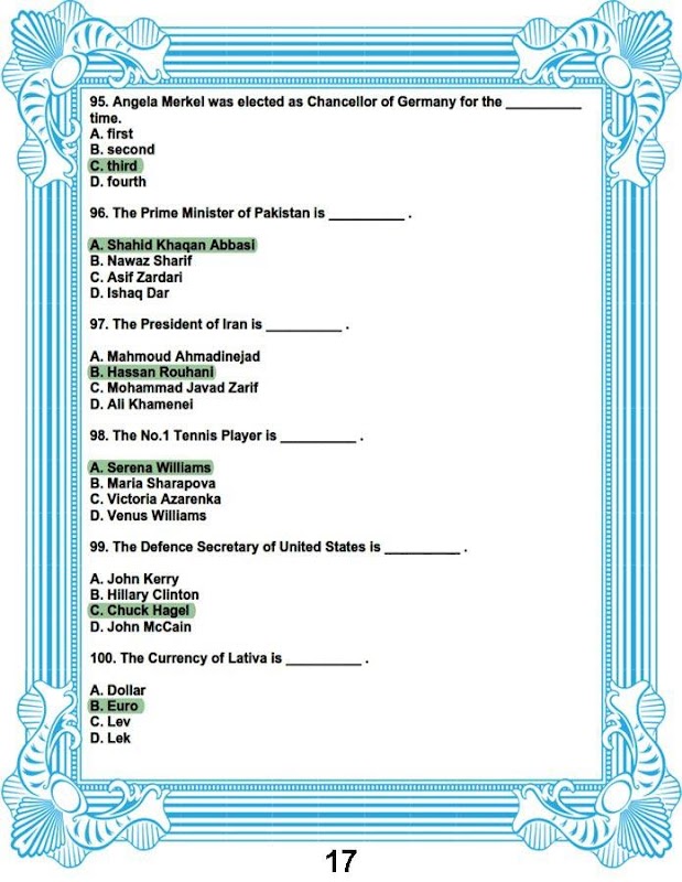 Collected from CSS Past Papers,FPSC Past Papers, PPSC and NTS Past Papers.
