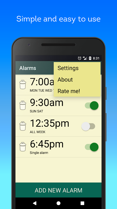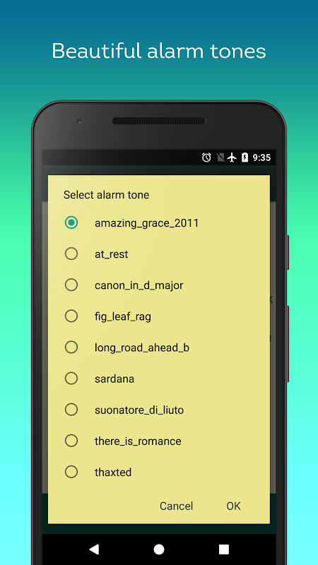 Simple alarm clock, with beautiful alarm tones and gradually increasing volume.