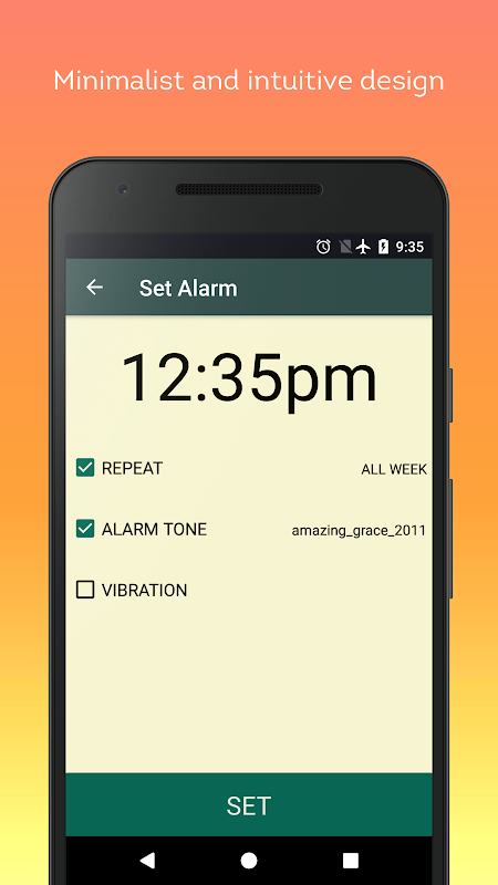 - beautiful, soft alarm tones (you can set different tone for every alarm or make it silent)