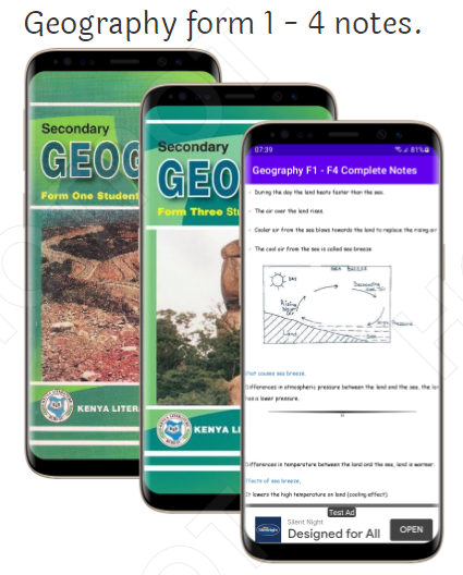 جغرافیہ: نظرثانی نوٹس فارم 1 سے فارم 4 کے جغرافیہ کے نوٹس پر مشتمل ہے۔ ایپلیکیشن طلباء اور دیگر صارفین کو نصاب کے اندر جغرافیہ کے مواد سے آراستہ کرنے کے لیے تیار کی گئی ہے۔ یہ طلباء کو KCSE فائنل امتحان کے لیے تیار کرتا ہے جغرافیہ: نظر ثانی کے نوٹس میں درج ذیل عنوانات ہوتے ہیں: