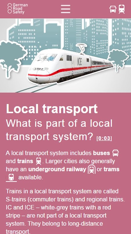 German Road Safety is the free app for everyone who wants to reach their destination safely. Either on foot, with the bus or train, by bike or car. German Road Safety is an animated Compact Guide that provides a good overview of the most important rules of the road in Germany – and can help you find your way and how to do so appropriately.