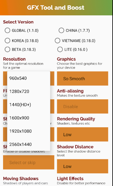 کے پرانے ورژن Gfx Tool Pro For PUB Battlegr