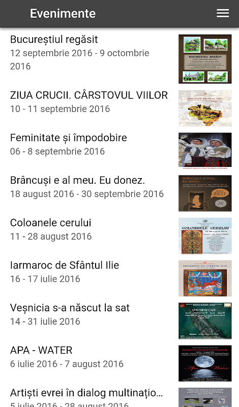 De asemenea aplicatia prezinta calendarul la zi al evenimentelor organizate si gazduite de Muzeul Satului , sectiune de socializare si detalii de contact