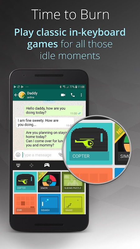 اپنی پسندیدہ اور اکثر استعمال ہونے والی ایپس کے ساتھ اپنے کی بورڈ کو حسب ضرورت بنائیں۔ واقعی بہتر اور نتیجہ خیز موبائل بہاؤ کے لیے نوٹس لیں، ایونٹس بنائیں، ای میلز بھیجیں اور چیٹ کریں۔