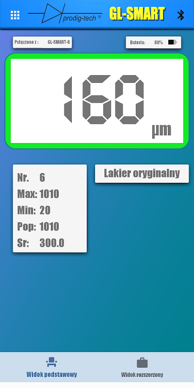 اینڈروئیڈ کے لئے تیار کردہ GL-SMART ایپلی کیشن GG-SMART سیریز پینٹ میٹر کے ساتھ پروڈگ ٹیک سے رابطہ کی اجازت دیتا ہے۔ میٹر ماڈل پر منحصر ہے ، ہمیں متعدد نئے افعال ملتے ہیں جو معیاری میٹر کے لئے دستیاب نہیں ہیں۔ ایپلی کیشن فی الحال اینڈرائیڈ 6 یا اس سے زیادہ پر چل رہی ہے۔