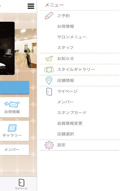 ▼マイページ機能で来店履歴や予約履歴がポイント保有数が確認できます。